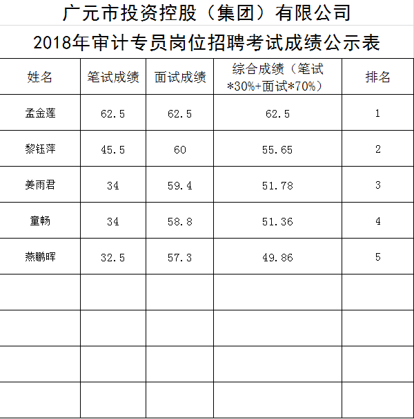 關(guān)于公開招聘工作人員的成績公示